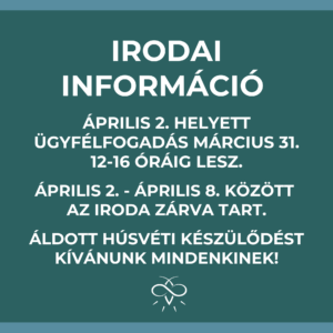 Kedves Bogarak! Húsvét ünnepe miatt a Nagyhéten az iroda nyitvatartása, illetve az ügyfélfogadás időpontja változik. Addig is forduljatok hozzánk nyugodtan […]